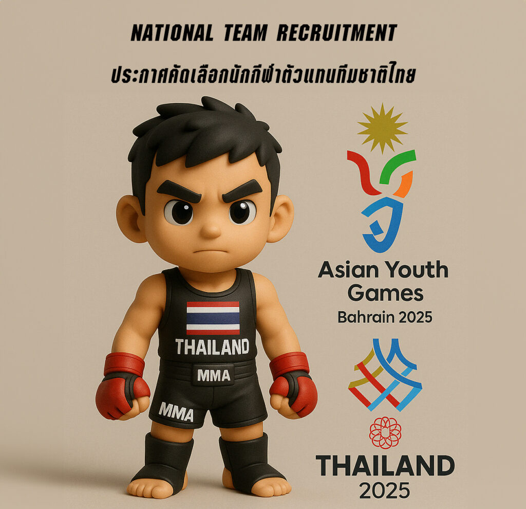 สมาคมกีฬามิกซ์มาเชียลอาร์ตแห่งประเทศไทย ขอเชิญประชาชนทั่วไปและเยาวชนผู้มีใจรักในกีฬามิกซ์มาเชียลอาร์ต (Mixed Martial Arts – MMA) สมัครเข้าร่วม การคัดเลือกนักกีฬาทีมชาติไทย และเยาวชนทีมชาติไทย เพื่อเข้าร่วมการแข่งขันรายการระดับนานาชาติ ดังนี้: 🎯 Asian Youth Games 2025 ครั้งที่ 3🗓 ระหว่างวันที่ 22 – 31 ตุลาคม 2568📍ณ ราชอาณาจักรบาห์เรน 🎯 The 33rd SEA Games🗓 ระหว่างวันที่ 9 – 20 ธันวาคม 2568📍ณ ประเทศไทย 📌 วันและสถานที่คัดเลือกนักกีฬา: 🗓 วันจันทร์ที่ 5 พฤษภาคม 2568⏰ เวลา 08.30 – 17.00 น.📍โรงเรียนมวยไทยลุมพินี เลขที่ 6 ถ.รามอินทรา แขวงอนุสาวรีย์ เขตบางเขน […]